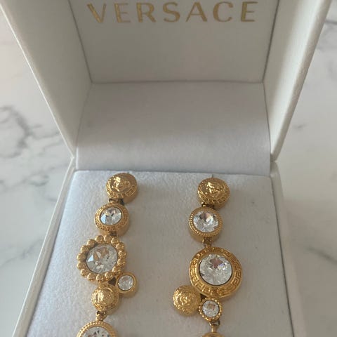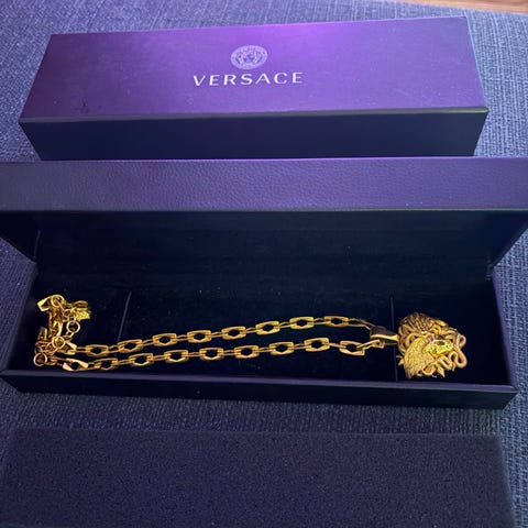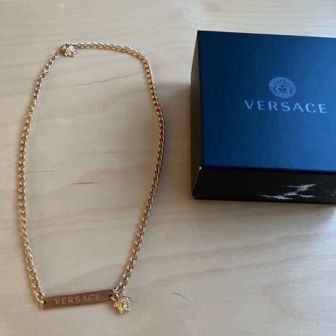 Versacen Medusa-aiheinen, kullanvärinen ketjukaulakoru, ja alkuperäinen Versace-rasia + tagi ovat mukana. Aito. Vain pari kertaa käytetty.