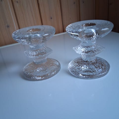 Iittala lasiset Festivo kynttilänjalat on suunnitellut Timo Sarpaneva.