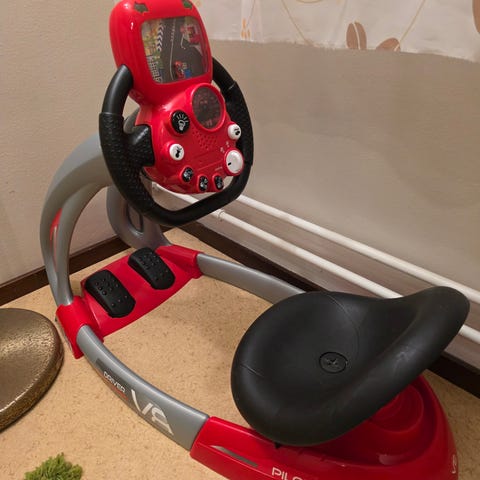 Ihan hyvässä kunnossa, toimiva V8 ajosimulaattori Smoby merkkinen, voi myös laittaa puhelimeen ajopelin ja kiinnittää stimulaattoriin niin että ajaisi sillä.