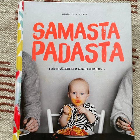 Lapsiperheen keittokirja Samasta padasta 2 puolessa tunnissa. Hyviä ja helppoja ruokaohjeita koko perheelle. Hyvä kunto, pieniä käytön jälkiä lähinnä kannessa.