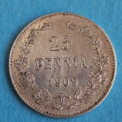 Hopeakolikko 25 pennin. 1908, 19 €
