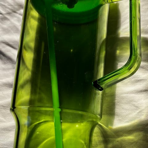 2L juomapullo pillillä. Hyvä kunto, pinnassa muutamia naarmuja.