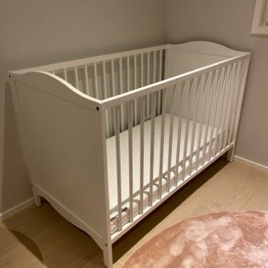 Ikean valkoinen pinnasänky. Puinen runko. Soveltuu vauvan ja taaperon käyttöön. Vähän jotain pientä kulumaa. Putsaan ja puran ennen noutoa. Omat kantajat mukaan.