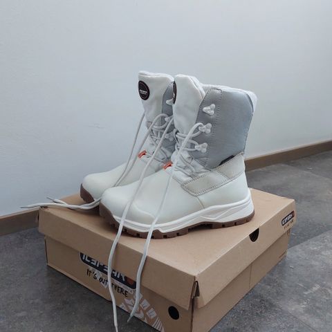 Moon Boot talvikengät, koko 38, valkoinen väri. Kengät on suunniteltu talvikäyttöön ja ne tarjoavat lämpöä ja suojaa kylmissä olosuhteissa.
