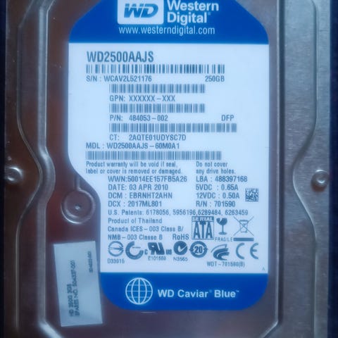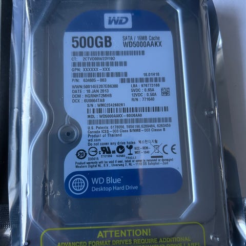 Toshiba 500 Gb kiintolevy (HDD).
