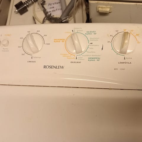 Kone toimiva. Etukulmasta pala pois mutta ei vaikuta toimivuuteen/käyttöön. Koneen runko kellastunut.
