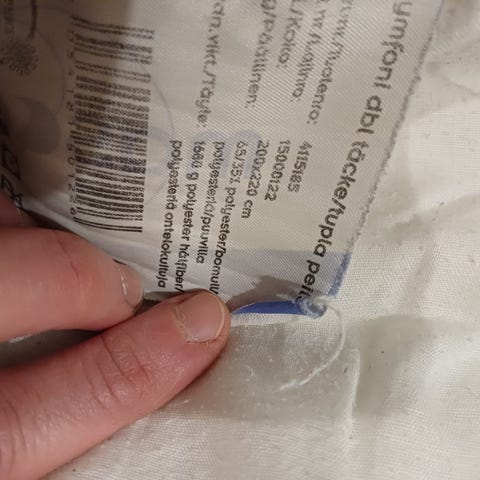 Uudenveroinen, pesty hajusteettomalla ja meillä vain yhden yön kokeiltu Livarno home parisängyn tuplapeitto. 220x240cm. Myytiin viileänä, mutta oli meidän makuun ennemmin keskilämmin. Nouto Ylämyllyltä. Postit ostajalle. Koiratalous, mutta koira ei pääse sänkyyn. MMM.