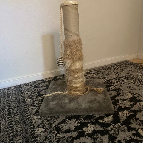Annetaan nopealle hakijalle ok-kuntoinen kissanpuu. Yksi naru vähän repsottaa ja muuten yleiskunto hyvä. Käytössä ollut kuitenkin joitain vuosia, joten uudenveroinen ei ole.