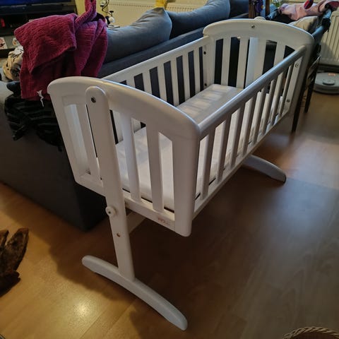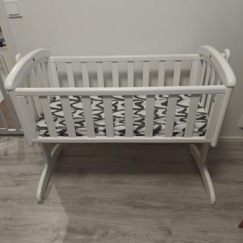 Hyväkuntoinen puinen/valkoinen lasten kehto/sänky.