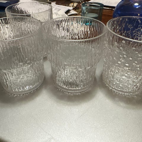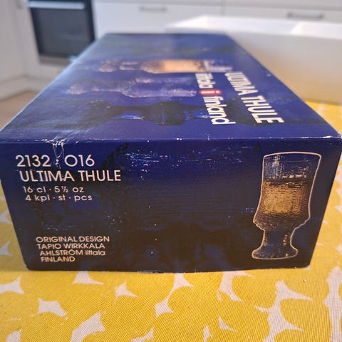 Myytävänä 4kpl Iittala Ultima Thule Juomalasi 16 cl korkeus 7cm halkaisija 7cm. Lasit ovat ehjiä ja hyväkuntoiset