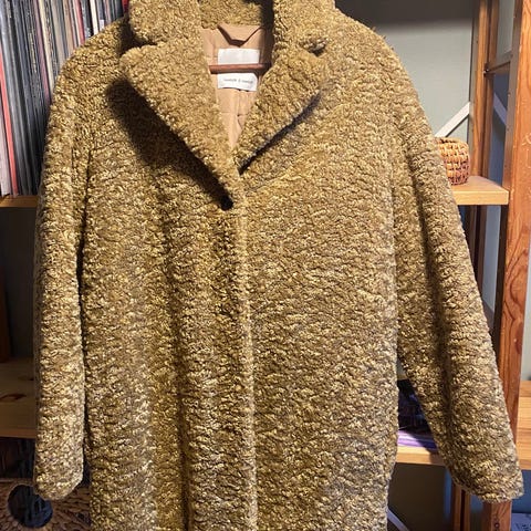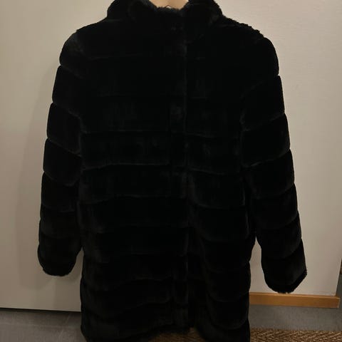 Samsøe Samsøe pitkä takki mustassa värissä, valmistettu tekoturkiksesta. Takki on naisten kokoluokkaa S.