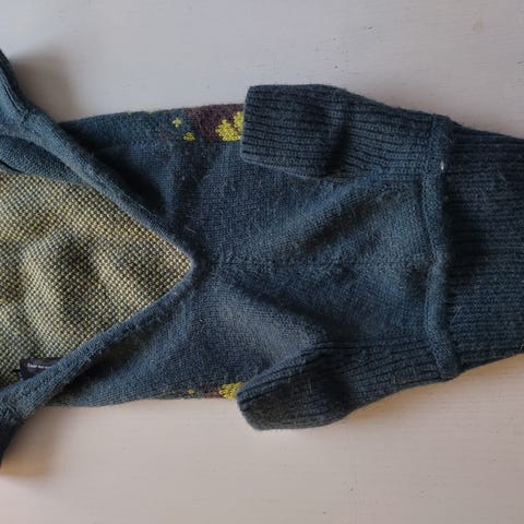 Kuvan mukainen vuorellinen puku. Pituus n. 40 cm, leveys kaula-aukon kohdalta 35 cm ja helmankohdalta 50 cm.