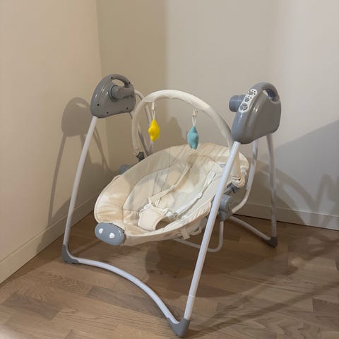 Kuusi keinumisnopeutta, erilaisia ääniä/musiikkeja. Istuimen selkänojaa saa säädettyä ja istuimen saa kokonaan käännettyä keinumaan myös sivuttain.