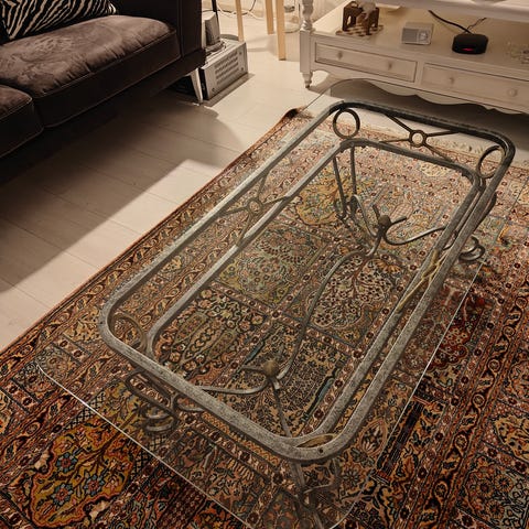 Lasikantinen tammi sohvapöytä. Alempi taso myös irrotettava.