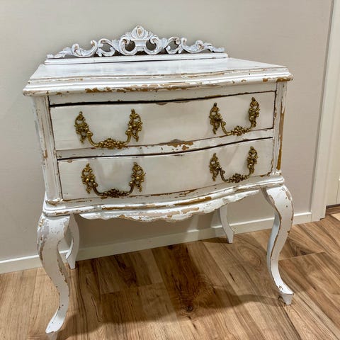 Vanha ruskea kaappi. Ihan siisti vielä mutta jälkiä löytyy. Laatikot vähän ränkkää mutta pystyy käyttämään. Kaappiin avain tallessa ja lukko toimii.