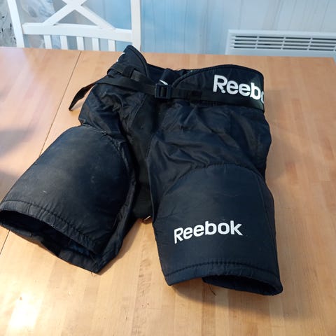 Myydään jääkiekkohousut. Merkki Reebok, koko M (n. 135-150?), siisti käytetty kunto.