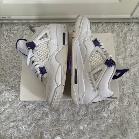 Jordan 4 metallic gold koossa 44,5. Käytetty vain muutaman kerran, eli todella hyvässä kunnossa, ei creasea. Boxi mukana.