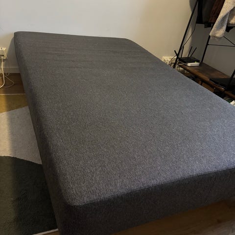 Runkopatja 120x200 mustilla jaloilla. Pehmeä sänky, hyvässä kunnossa.