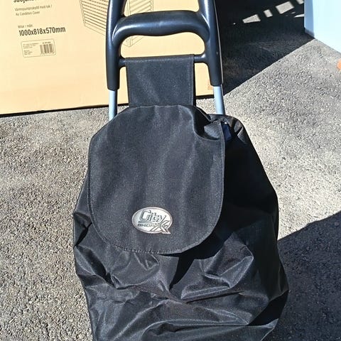 Ostoskärry /-laukku isoilla renkailla. Erittäin hyvässä kunnossa. Tukeva ja kevyt. Maksu käteinen, MobilePay tai ToriDiili.
