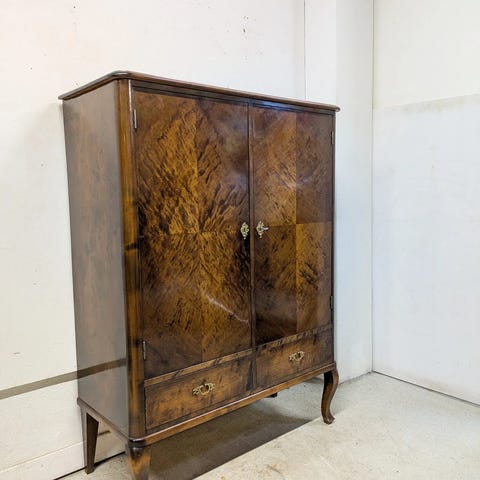 Kuvan upea 50-luvun kaappi myytävänä. Kaapin oviin löytyy avaimet ja lukot toimivat. Toinen lukko hieman jämäkkä avainta käännettäessä. Pinnat ikäisekseen siistit kuten myös sisusta. Ei hajuja. Runko ja rakenne edelleen vakaa.