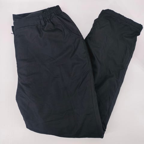 Naisten uudet mustat toppahousut, koko 48, polyesteriä, kevyet mutta lämpimän paksut. Vyötäröllä kuminauha 105-115cm, lantion ympärys 135cm, housujen pituus 115cm. Valmistajan nimeä ei löydy.