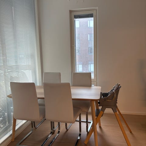 Myydään/annetaan kahvipakettia vastaan 4 kpl valkoisia tekonahkaisia tuoleja. Pöytä ei ole myynnissä. Perus siistissä kunnossa mutta joitain tahroja voi löytyä/ pientä kulumaa. Siistiminen jää ostajalle 😊 Nopeat kaupat ja haku martinlaakso, vantaa. Kahvipakettia vastaan 😊
