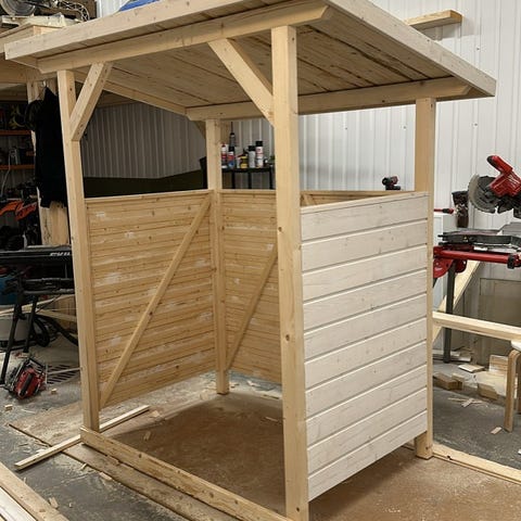 Roskakatos vanhan ladon purkutavarasta. Kevään 26 aikana valmistamme muutaman yksilöllisen roskakatoksen opiskelijatyönä. Hintaan sisältyy pohja painekyllästetystä lankusta sekä katto palahuovasta, lomalaudasta tai pellistä. Kuljetus ja pystytys sovitaan erikseen.