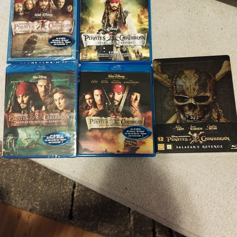 Myydään upeassa kunnossa oleva Pirates of the Caribbean -elokuvasarjan 4K UHD -kokoelma. Sisältää kaikki viisi seikkailua: Mustan helmen kirous, Kuolleen miehen kirstu, Maailman laidalla, Vierailla vesillä ja * Salazar’s Revenge*.
