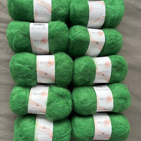Kuusi kerää Novitan Silmu mohairlankaa. 50 g kerä, väri turkoosi, sininen, monivärinen. 36 % mohair, 33 % polyamidi, 31 % akryyli. Kaikki kerät samaa erää. Savuton, eläimetön koti.