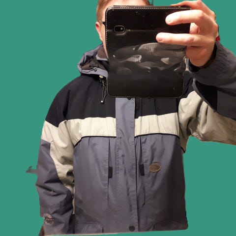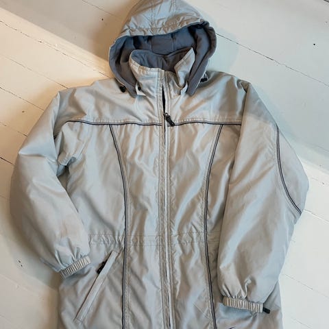 Keltainen fleecevuorinen Everton-ulkoilutakki. Siistikuntoinen. Koko L (hartia 60 cm, hiha 60 cm, pituus 80 cm). Vetoketju- ja nepparikiinnitys, neljä ulkotaskua ja povitasku, kaikissa vetoketju. Irrotettava huppu, hupun neppareista yksi löysä.