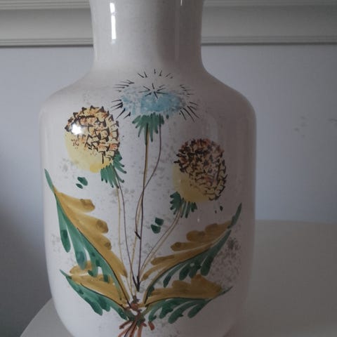 Kaunis keraaminen maljakko, pieni nirhauma kaulassa (näkyy kuvassa).