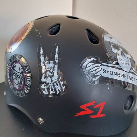 Tyylikäs mattamusta kypärä. Säädettävät hihnat käyttäjän päähän sopivaksi.