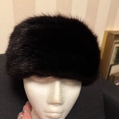 Naisten minkkiturkispäähine. Musta. Uudenveroinen. koko noin 57.