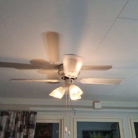 Tuuletinvalaisin n. metri halkaisijaltaan, tuulettaa ilman valoa tai valon kanssa ja valo toimii ilman tuuletintakin. Oikein nätti, Tuulettimessa 3 nopeutta, todella vähän käytetty , suoraan katosta, muuton vuoksi käteisellä, en lähetä, ei ole mobilpaytä