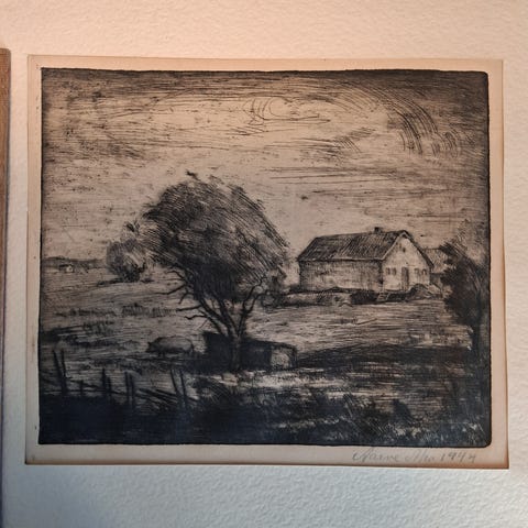 Aarne Alanko signeeraama maalaus, öljyväri kankaalle. Teos esittää maisemaa, jossa näkyy heinäkasoja ja puita. Maalauksen koko noin 39 cm leveä. Kehyksellinen taideteos, jossa kullanvärinen kehys. Koko on 41 x 51cm, kehys mukana.