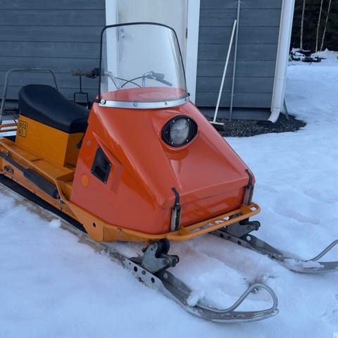 Muovi sukset vaihdettu eteen ja Mikunin kaasari helpottamaan kelkan toiminta varmuutta ja käyttöä. Matto on hyvä kuntoinen eikä ole pyrkinyt. Penkin päällinen huono mutta muuten siisti ja toimiva peli. Ollut minulla ladun veto juhtana useamman vuoden.