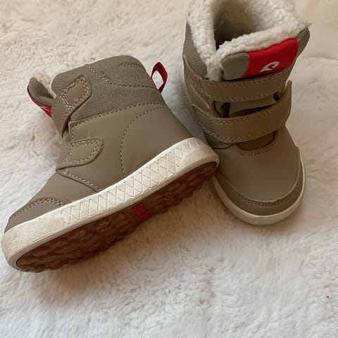 ReimaTec lasten talvikengät, koko 20, unisex-malli. Kengissä on lämmin vuori, tarrakiinnitys ja neutraali beige. Täysin uudet, vain kerran kokeiltu.