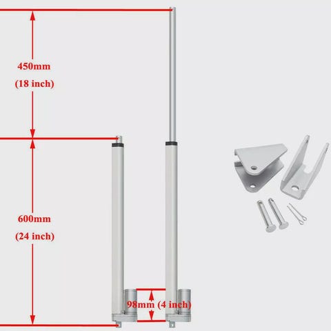 Sähköservo toimii 12v jännitteellä ja on ohjattavissa manuaalisesti tai kaukosäätimellä. Liikerata on noin 400mm ja voima 1500N. Lineaarimoottorin sylinterin päässä kiinnikereikä on 8mm, kun taas runko päässä reikä on 6mm. Karamoottorit sopivat parhaiten syklittäiseen ajoon eli käyttösyklit ovat
