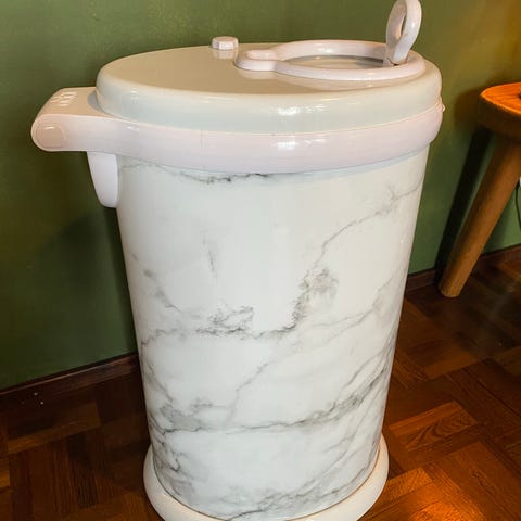 Ubbi-vaipparoskis on voittanut monia muotoilupalkintoja, mikä tietysti lämmittää mieltä, kun aamuneljältä vaihdat sänkyyn vuotanutta kakkavaippaa. Meillä ne ajat ovat onneksi takana päin, siksi myydään.