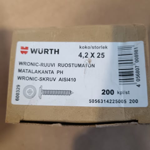 Sinkittyjä ohutlevyruuveja, pituus 25 mm. 500 kpl laatikko.