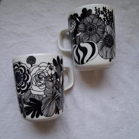 Marimekko Siirtolapuutarha mukit 2 kpl mustavalkoinen