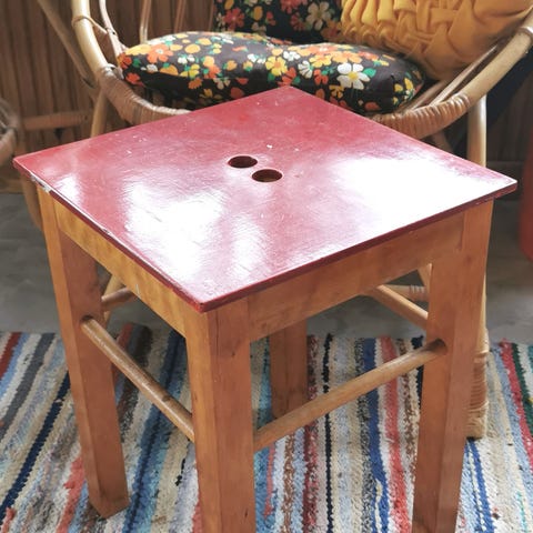 Pyöreä pianojakkara halkaisija 34 cm Minimikorkeus 44 Maximikorkeus 76.Kalle Kitunen suunnitellut ja tehnyt