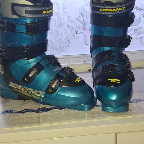 Vanhat, mutta vielä ihan käyttökelpoiset Rossignol laskettelumonot, kokonumeroa en löytänyt, mutta olleet käytössä 37 numeron kenkiä käyttävällä naisihmisellä. Olisiko sisämitta 230 mm. Painavat, mutta satunnaiselle laskettelijalle varmaankin ihan ok. Kuntoarvioksi laitoin kohtalainen, mutta ovat kyllä ihan ehjät ja käyttökuntoiset.