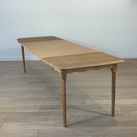 Tanskalainen massiivitamminen ovaali ja suora jatkettava vaalea 1950-60-luvun ruokapöytä. Pöytä on hiottu, öljytty ja vahattu hienoksi ja sen ympäri mahtuu 8-10 henkeä täysin jatkettuna. Pöytä on hienossa ja kauniissa kunnossa.