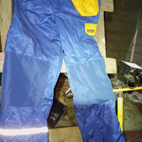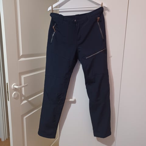 Ehjät miesten toppahousut. Henkselit saa halutessaan pois, vyötäröllä tarra kiristys ja lahkeissa lumilukot. Lahkeiden sisäsyrjällä värjäymää, näkyy kuvissa.