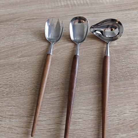 Norjalaiset vintage salaattiottimet, tiikkivartiset