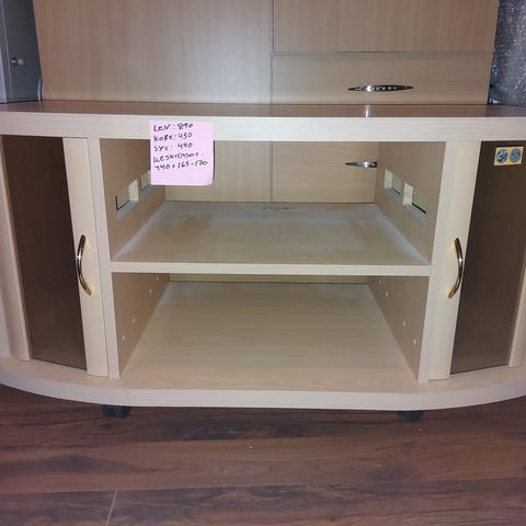 Kuvan mukainen lipasto. Paikka myös esim. Videoille. Aukon koko, leveys 61cm, korkeus 24cm.