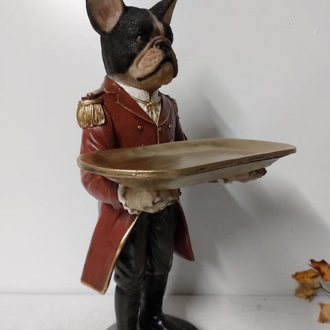 Suuri, ylellinen kultainen leopardi-veistos, joka lisää eleganssia ja luonnetta mihin tahansa sisustukseen. Sen dynaaminen muoto ja hienostunut viimeistely tekevät siitä silmiinpistävän keskuksen sohvapöydällä tai sivupöydällä. Ilmaisuartikkeli hienostuneiden ja ajattomien muotoilujen ystäville.