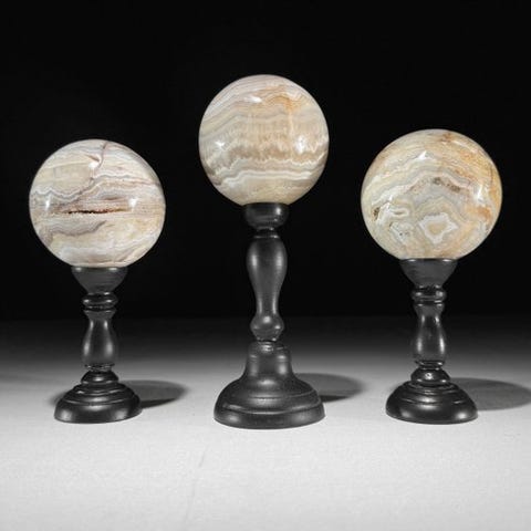 Upea setti kolmen punaisen jaspiksen pallon kustomoiduilla jalustoilla.