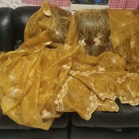 Kaksi tylliverhoa. Yhden verhon koko on noin 150 cm x 250 cm. Kuljetus Joensuuhun onnistuu.